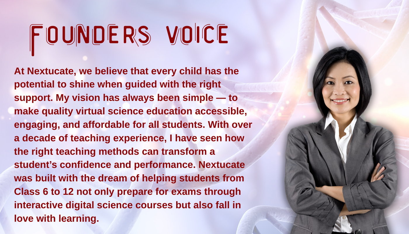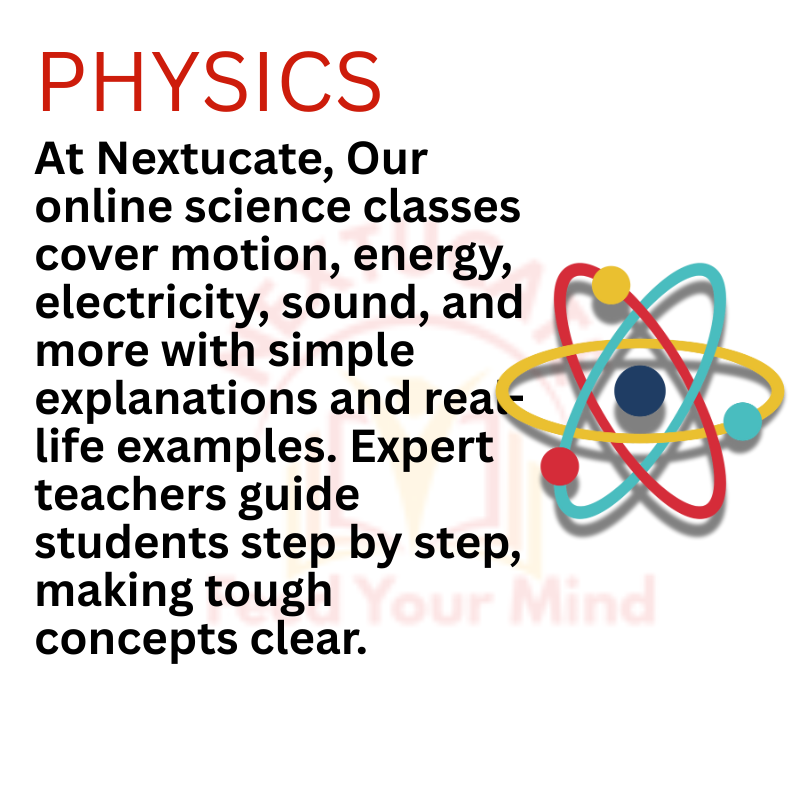 At Nextucate, we offer engaging science courses for students of classes 6 to 12. Covering Physics, Chemistry, and Biology, our lessons simplify complex concepts with easy explanations, visuals, and practice exercises. Designed to boost understanding and confidence, these courses prepare students for exams and build a strong foundation in science.